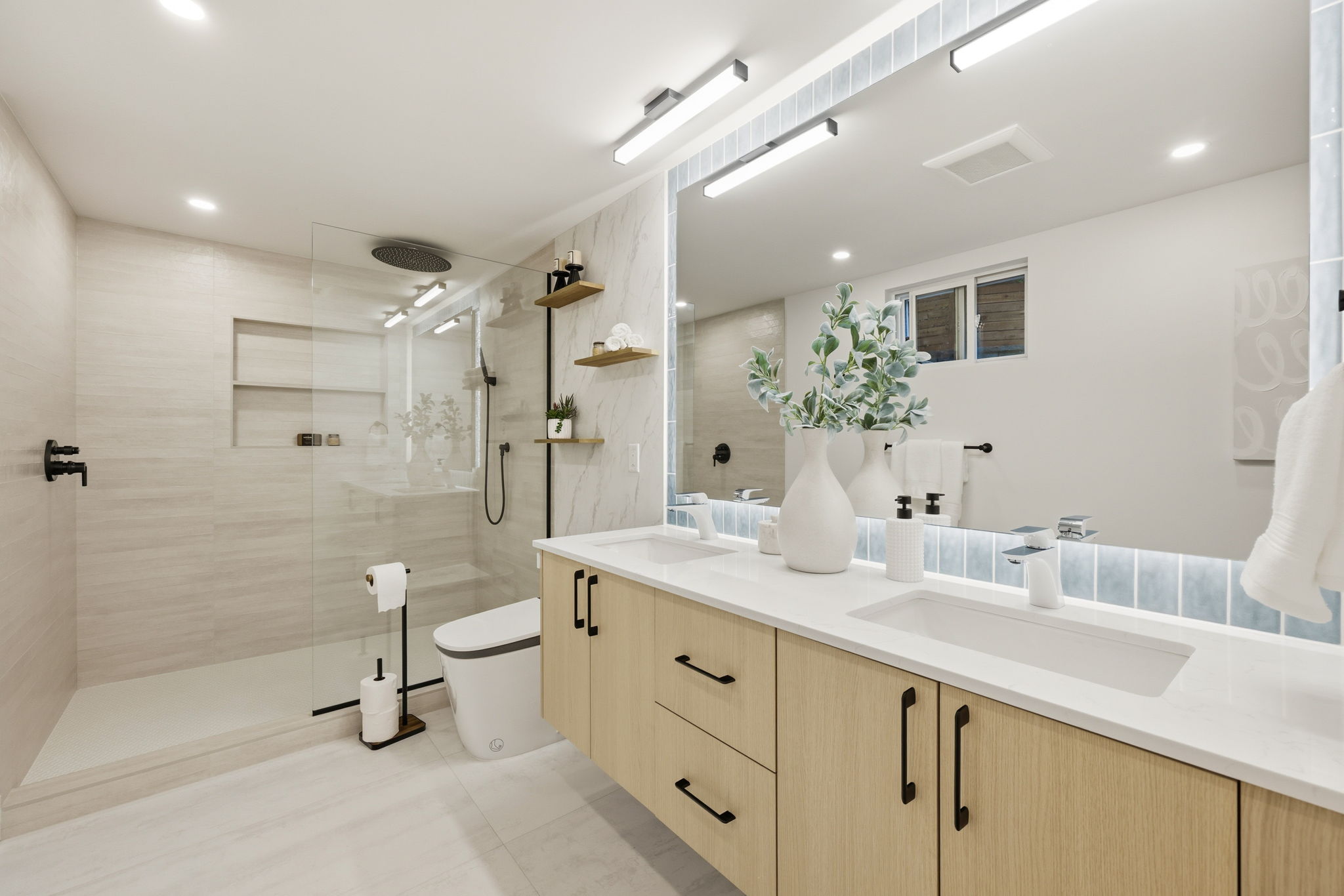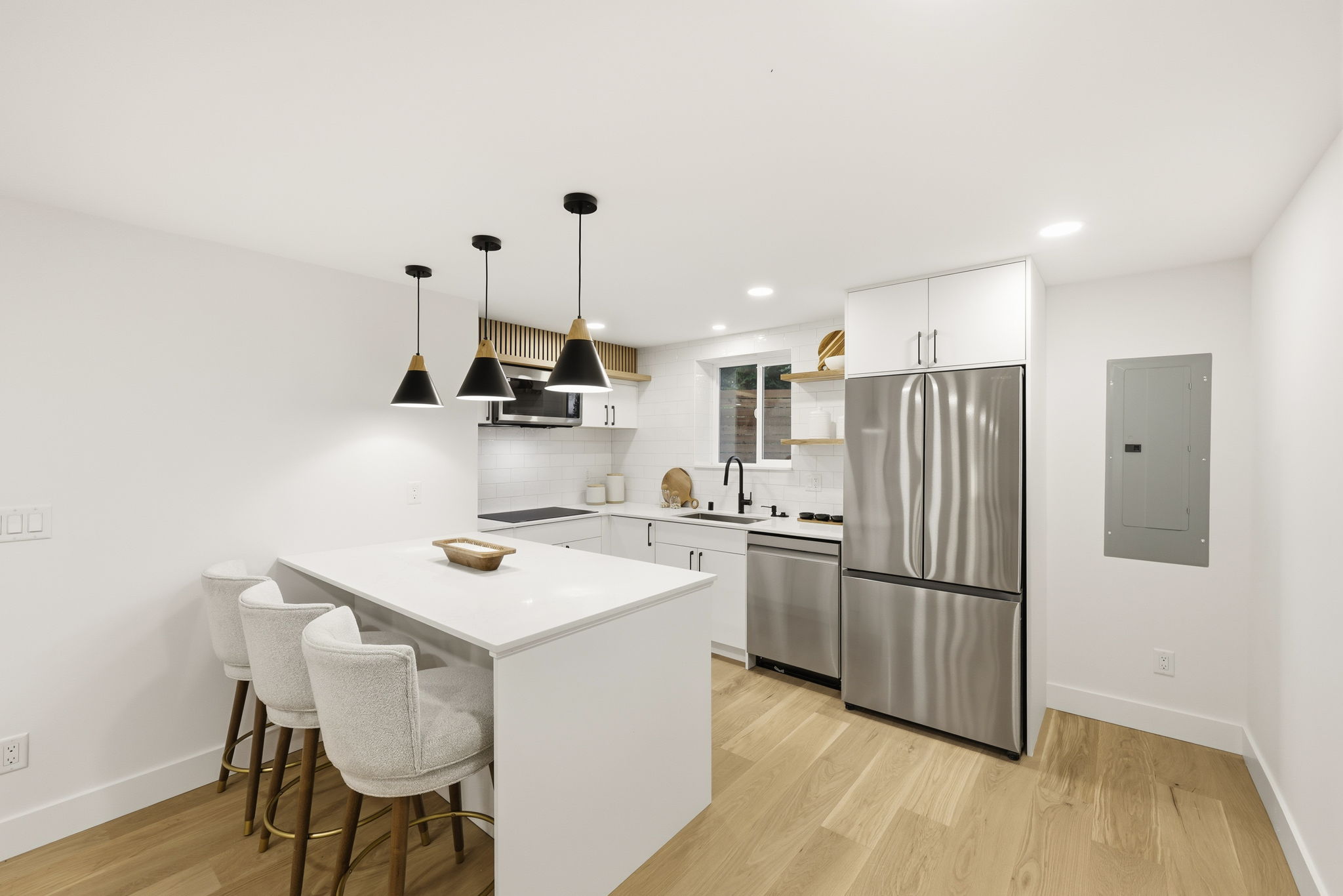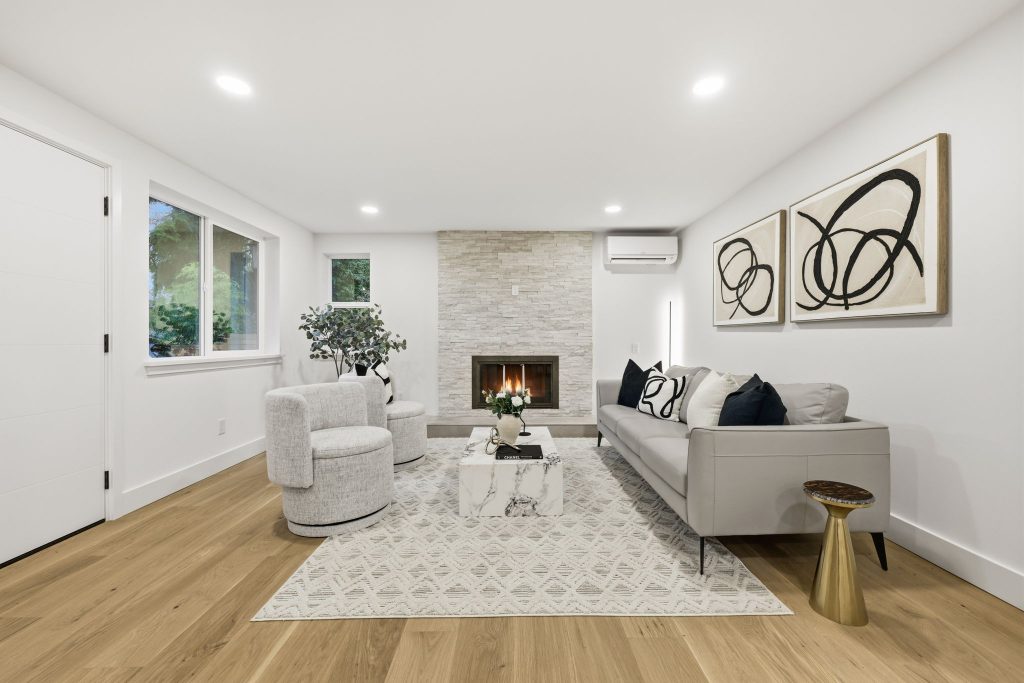 Beautifully updated 5BD/3BA Lake Forest Park home offering flexible living and modern comfort. Entry level features a welcoming living area with a full kitchen, a spacious primary bedroom with a spa-like ensuite, plus an additional bedroom. Upstairs, enjoy a second full kitchen, a bright open living room, and a large deck perfect for entertaining. Three more generous bedrooms—one ideal as an office—plus a full bath and an additional ensuite complete the upper level. A two car garage that's EV-ready adds convenience and future-proof value. Perfect for multi-generational living or extra rental potential.